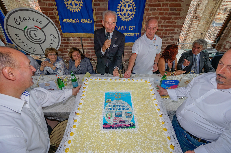 (Articolo di Silvia Lodi Pasini, pubblicato su “IL GIORNO” Pavia) – Un assalto al castello in piena regola, ma a luccicare stavolta non armature ma splendide carrozzerie. Quelle delle 43 auto storiche che domenica (13 settembre) hanno sfilato per la 2^ Rotary Historica: l’autoraduno solidale organizzato dal Rotary club Morimondo Abbazia col Rc Pavia Est Terre Viscontee di Belgioioso e Classic Club Italia per raccogliere fondi a favore di un minore di Borgarello (PV) solo al mondo. L’evento si è snodato lungo il tragitto tra Morimondo e Belgioioso, alla scoperta di bellezze architettoniche. Purtroppo Giove Pluvio non è stato molto clemente nelle due tappe intermedie: a Certosa di Pavia e a Borgarello, dove alla Rsa Amodeo c’è stata la sosta-ristoro con visita alla struttura per anziani. La pioggia ha risparmiato per fortuna sia la partenza che l’arrivo a Belgioioso, dove le auto si sono posizionate nel cortile della parte trecentesca del Castello, di proprietà comunale, e nelle vie dintorno al monumento simbolo della città: un colpo d’occhio di notevole impatto sia per i belgioiosini che per i turisti, che visitando il castello si sono trovati di fronte a una splendida parata di auto d’epoca, tra cui esemplari unici in Italia. Oltre 150 persone hanno pranzato nel salone della “manica incompiuta” del castello, dove Alcandro Paris, presidente del Rc Pavia Est Terre Viscontee ha fatto gli onori di casa. Al suo fianco Giuseppe Resnati, presidente del Rc Morimondo Abbazia, che ringraziando i presenti, tra cui il vice sindaco di Belgioioso Fabio Zucca, ha poi proceduto alla premiazione delle auto vincitrici. Tutte le vetture partecipanti, infatti, sono state sottoposte al giudizio dei presenti, che un voto a favore della preferita. Il risultato così ottenuto si è sommato al voto della Commissione tecnica di valutazion, decretando la vittoria finale della Lancia Aurelia B24 convertibile del 1956 di Attilio Mari di Rodano (MI), premiata col “Pistone d’oro”. Alla Lancia Augusta del 1930 di Gianni Femminiella di Milano la coppa “Historica” per l’auto più vecchia. “Pistone d’oro” anche ala Mercedes Benz 170DS del 1952 di Paolo Ciprandi, il London Taxi del 1984 di Aurelio Morosi e l’Alfa Romeo Giulia 1600 del 1962 di Franco Orio. Alla Porsche coupé 356 del 1963 di Alessandro Ravenni di Prato la coppa Historica per l’equipaggio più lontano.