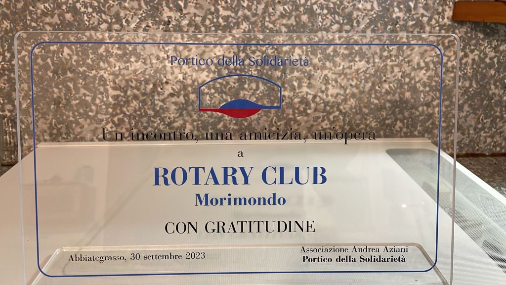 [Articolo di Silvia Lodi Pasini] – Un weekend ricco di soddisfazioni per il Rotary Club Morimondo Abbazia, che nella Città del Leone ha ricevuto i ringraziamenti ufficiali di due delle varie associazioni di Abbiategrasso che abitualmente aiuta economicamente per espletare le loro missions: il Portico della Solidarietà e l’Anfass il Melograno di via per Cassinetta. Una delegazione di soci, cappeggiata dal presidente Maurizio Arceri, ha ricevuto la gratitudine del Portico della Solidarietà, realtà nata da una collaborazione fra l’istituzione comunale e l’Associazione Andrea Aziani Onlus, e che oggi rappresenta una concreta attuazione del principio di sussidiarietà, diventando a tutti gli effetti un supermercato Gratuito per le famiglie in difficoltà. Fondamentale è stata il sostegno del Comune di Abbiategrasso che ne ha riconosciuto l’utilità e la possibilità di una riduzione dei costi per i servizi sociali. Il presidente del Portico Paolo Cucchi, in segno di riconoscenza, ha donato al club di Morimondo una targa di benemerenza personalizzata nella sala consiliare del castello visconteo. Contemporaneamente, un’altra delegazione del Rc Morimondo Abbazia capitanata dai past President Giuseppe Resnati e Maurizio Salmoiraghi veniva ricevuta, sempre ad Abbiategrasso, nella storica sede dell’Anfass, in strada per Cassinetta, dove è stata ospitata a pranzo e ringraziata in forma ufficiale dal presidente Gelpi per i notevoli contributi elargiti come contributo per l’acquisto del nuovo pullmino attrezzato di pedana elevatrice per il trasporto degli ospiti non deambulanti e un nuovo macchinario per la lavanderia.