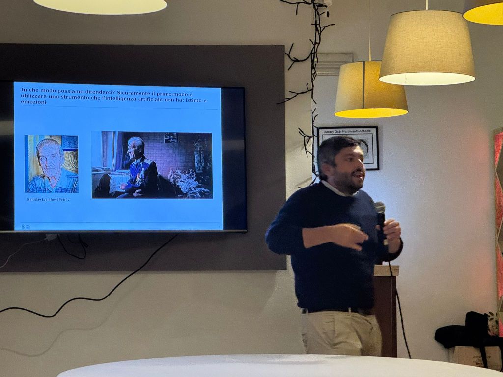 L’evento ha attirato un folto pubblico, dimostrando l’interesse crescente verso una tematica che sta rapidamente ridefinendo le dinamiche del nostro tempo. La conferenza ha preso il via dalla definizione stessa di “Intelligenza Artificiale”, chiarendo subito come questo termine abbraccia una vasta gamma di tecnologie e applicazioni. A tal proposito, il Dott. Marseglia ha portato come esempio il recente caso di una foto virale, ritraente un bacio tra i due principali candidati alla presidenza degli Stati Uniti. Questa immagine, interamente generata dall’IA, ha suscitato ampio dibattito e preoccupazione, in quanto rappresenta un esempio lampante del fenomeno delle fake news e dell’impatto delle tecnologie di IA generativa. La discussione si è quindi spostata su come la società possa difendersi da tali contenuti manipolati, esplorando le attuali tecniche di rilevamento e le sfide future legate alla diffusione di notizie false. Il relatore ha sottolineato l’importanza di una maggiore alfabetizzazione digitale e dell’introduzione di strumenti normativi volti a regolamentare l’uso dell’IA in contesti sensibili. Un altro punto centrale del dibattito è stato il complesso rapporto tra essere umano e intelligenza artificiale. Il Dott. Marseglia ha spiegato come l’IA eccella nell’analisi dei dati e nella capacità di rilevare correlazioni, ma rimane ancora lontana dal comprendere le vere cause dietro i fenomeni osservati, un’area in cui l’intuizione e l’empatia umane giocano un ruolo cruciale. L’esempio più emblematico è stato il confronto tra l’analisi meramente statistica di un modello di IA e l’interpretazione umana, che, grazie alle emozioni e alle esperienze soggettive, riesce a cogliere sfumature che sfuggono alla logica algoritmica. Verso la conclusione della serata, il relatore ha affrontato una delle domande più ricorrenti e complesse del nostro tempo: “L’intelligenza artificiale ruberà o migliorerà i nostri lavori?”. In un’analisi equilibrata, Marseglia ha sottolineato che, se da un lato l’IA sta automatizzando molte attività ripetitive e prevedibili, dall’altro sta aprendo nuove frontiere professionali, in cui le competenze umane rimangono insostituibili, specialmente nei campi della creatività, della leadership e del problem solving. La serata si è conclusa con un vivace dibattito tra i soci presenti, segno dell’interesse e della passione suscitati da un tema che, più che mai, merita di essere esplorato in profondità. Le domande hanno spaziato dall’implementazione pratica dell’IA nelle aziende locali fino a preoccupazioni di natura etica, evidenziando come questo argomento tocchi trasversalmente ogni settore della società moderna. Davide Carnevali
