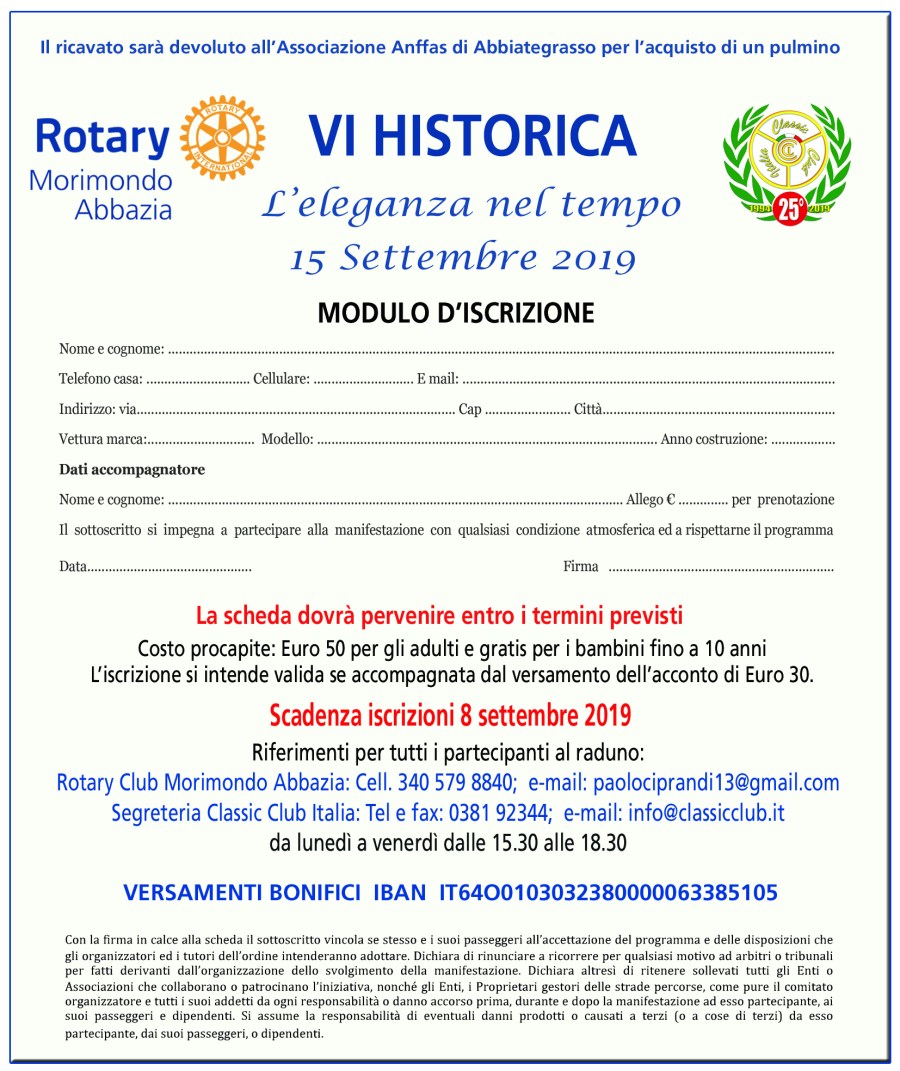 6° Rotary Historica – 15 Settembre 2019