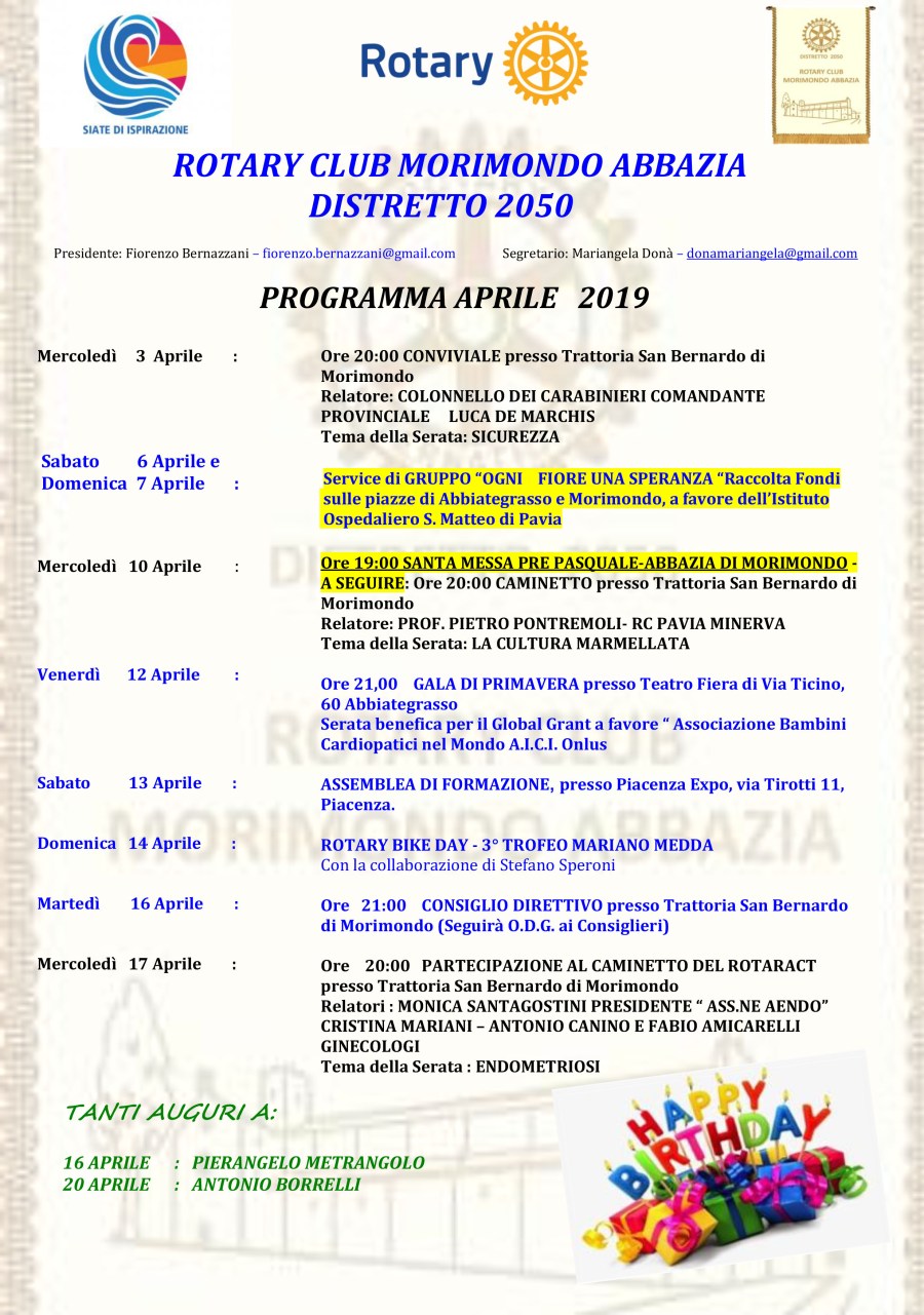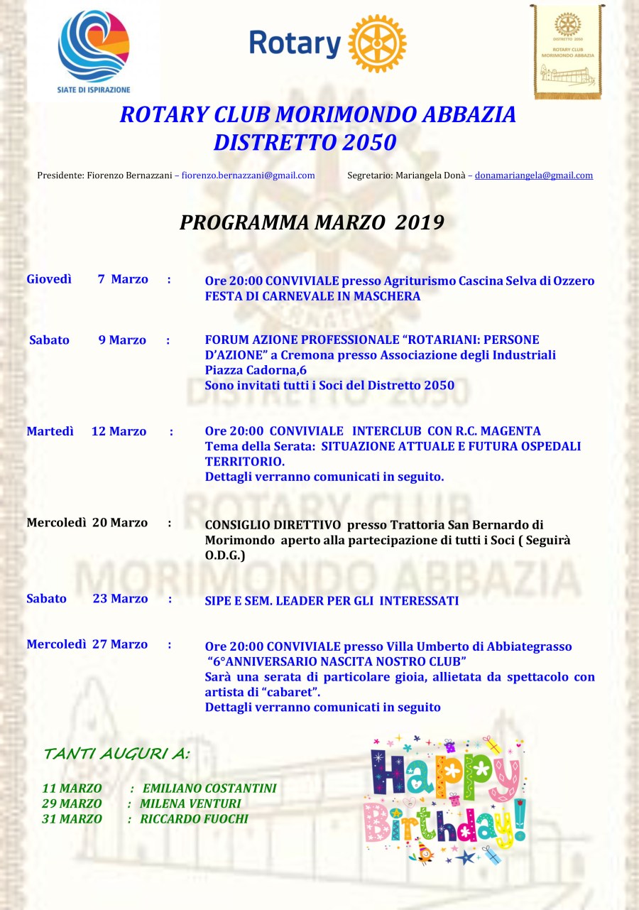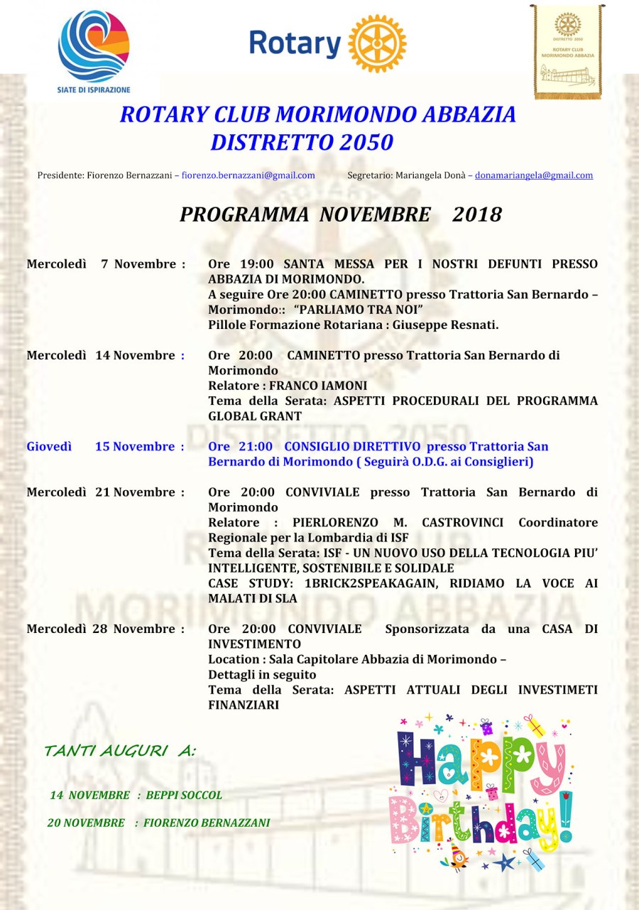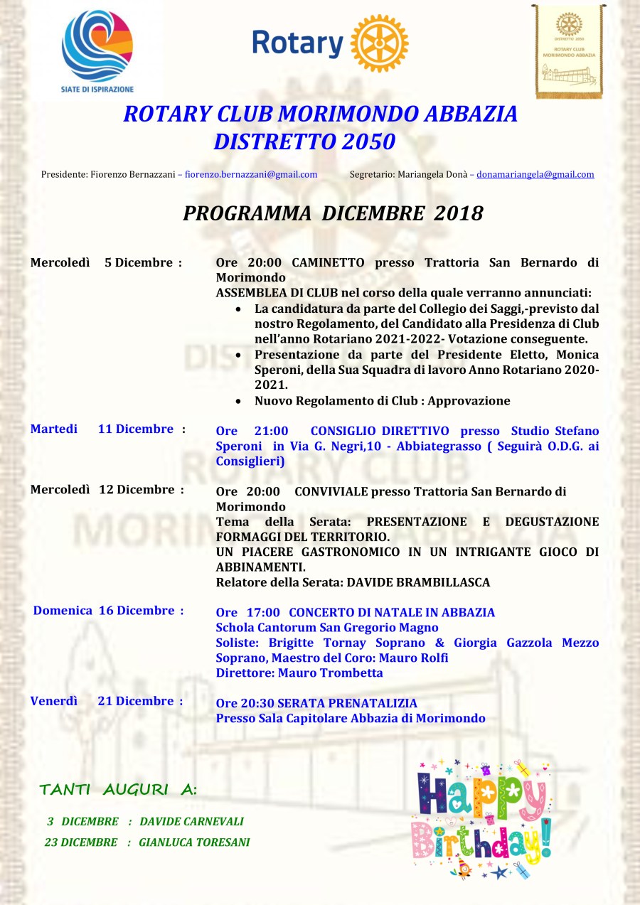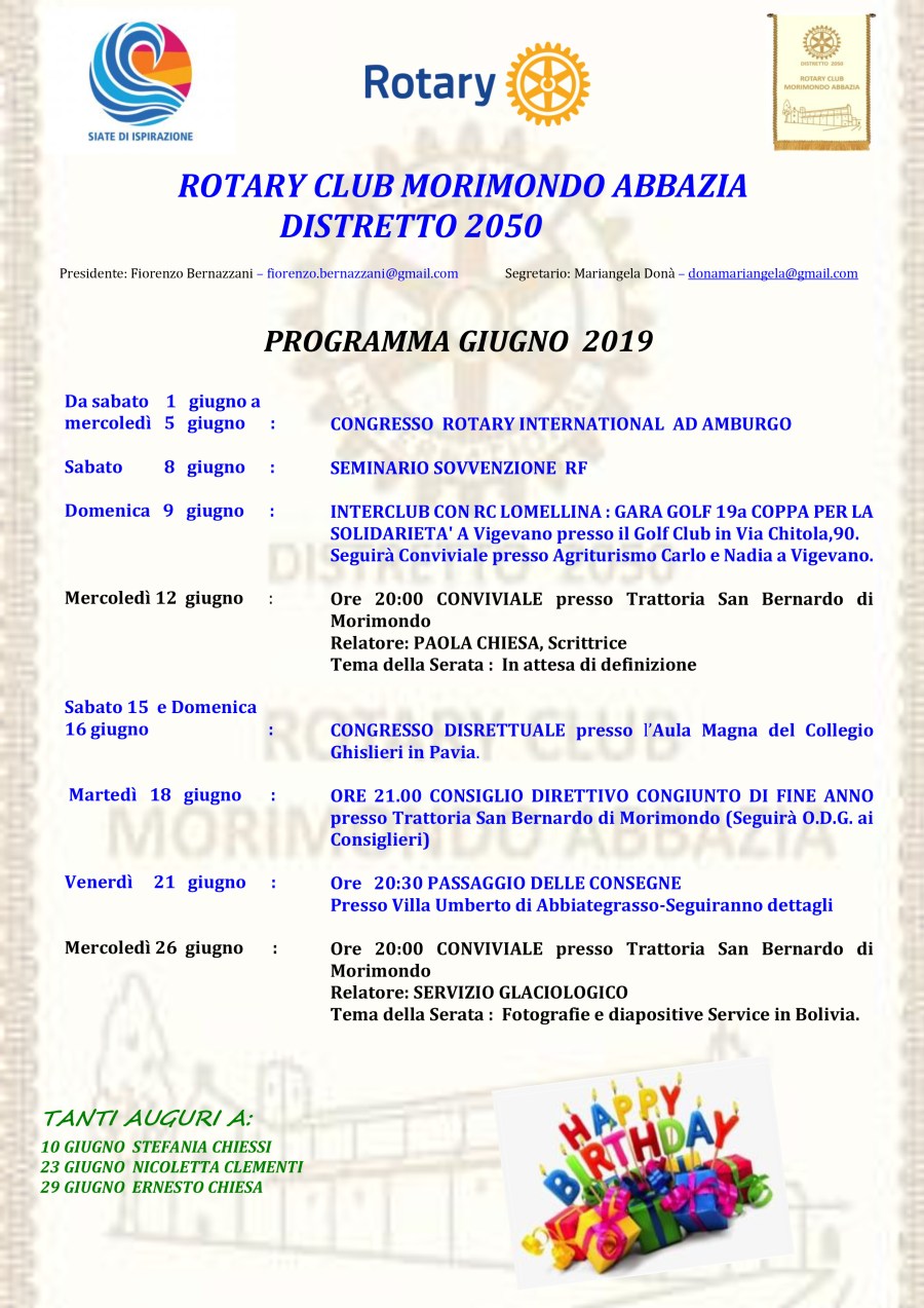 Programmi Anno Rotariano 2018 – 2019